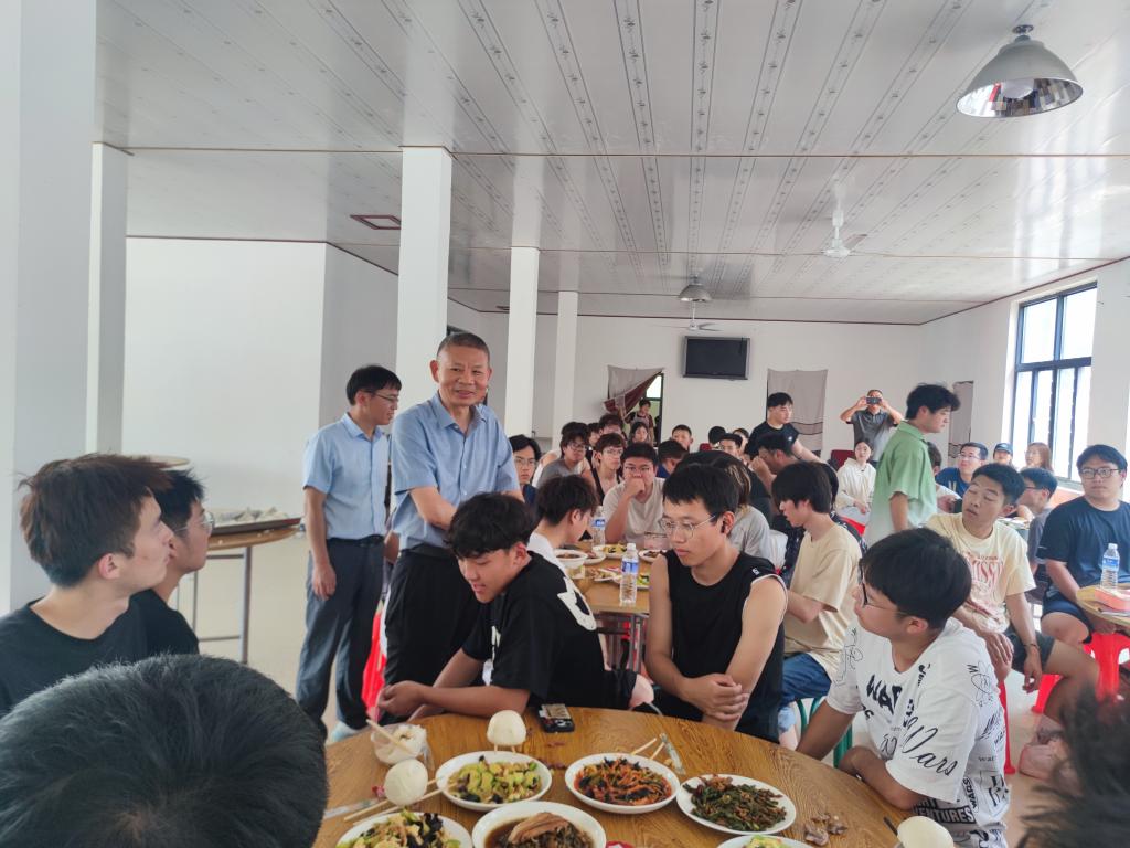 随后,洪利前往员工宿舍和食堂进行实地调研。仔细查看了同学们的住宿条件与餐饮环境,并与同学们亲切交谈,表达了深切的关怀和鼓励。他指出,野外测量实习是测绘工程专业人才培养中非常关键教学环节,既是理论向实践转化的核心枢纽,更是锤炼工程思维与创新能力的熔炉。因此,公司在经费非常紧张的情况下,依然组织同学们来基地进行实习,所以同学们一定要珍惜好来之不易的实习机会,以不畏艰辛、勇于钻研的态度投入实习,力争取得更多、更好的实习成果。同时强调,野外实习一定要把安全放在首位,时刻绷紧安全这根弦,确保平安、顺利完成全部实习任务。最后,洪利预祝全体测绘实习师生实习顺利!暑期愉快!