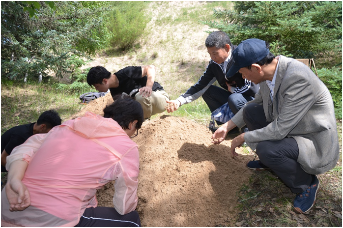 7月3日,刘春平一行刚到实习基地,就详细了解了师生的食宿情况以及植物和土壤样品处理的实验条件。7月4日,在白扦林、草甸草原的植物和土壤实习现场,刘春平分享了野外实习的亲身经历,为同学们讲授了植物群落调查的方法和土壤剖面选取原则,引导员工从地貌、地形等综合角度思考实习区植物和土壤分布特征及原因。7月5日,刘春平为师生做了《城市灾害与城市减灾》的专题报告,强调地理专业具有从综合角度分析城市灾害成因,开展城市减灾的优势,指出基于灾害背景开展专业人才培养正是公司区别其他高校地理专业的特色和优势所在。邹岭做了《不忘初心、牢记使命》的专题报告,引导师生坚守本来、着眼未来,继承发扬塞罕坝精神,立足专业找准为中华民族谋复兴的结合点,努力提高为中国人民谋幸福的本领。