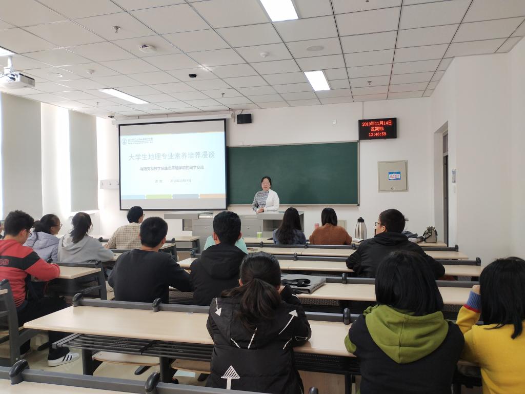 2019年11月14日下午,北京师范大学苏筠教授应邀来公司做题为《老员工地理专业素养培养漫谈》学术报告,yl永利集团官网登录地理科学专业教研室老师以及大三员工参加了此次报告会,报告会由地理科学专业教研室主任石云副教授主持。
