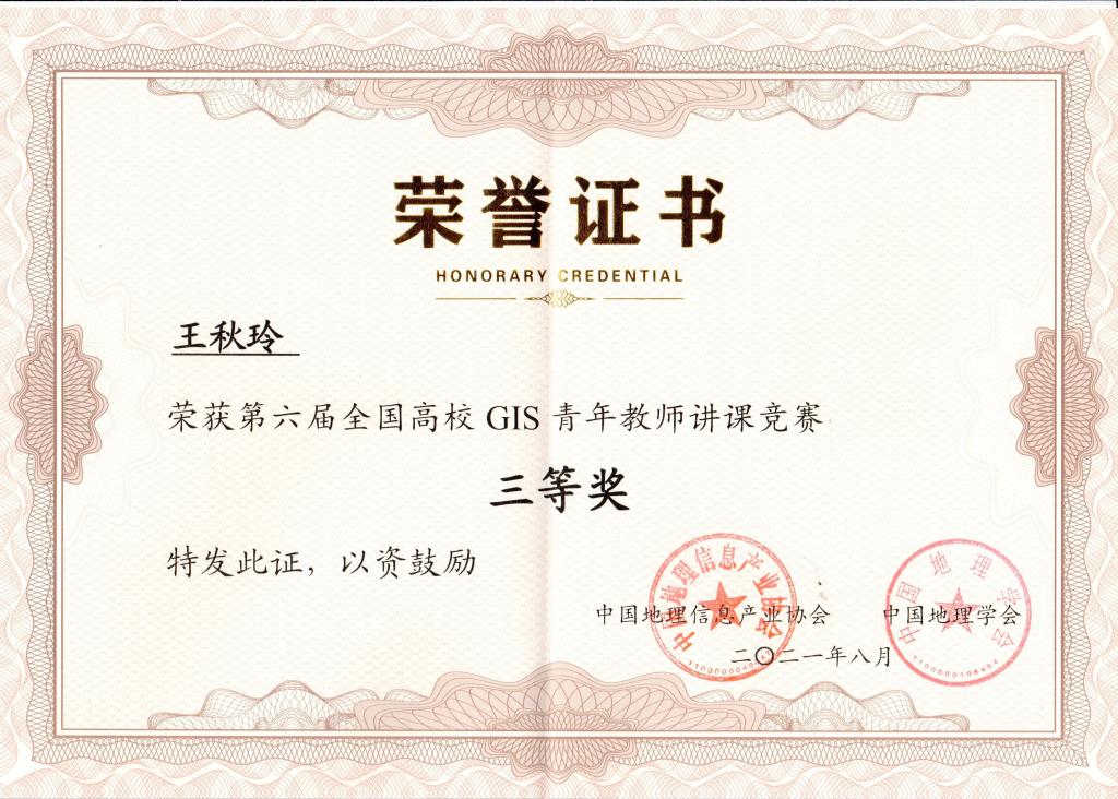 2021年8月2日-4日,由中国地理信息产业协会、中国地理学会、浙江大学和南京师范大学主办的第六届全国高校GIS青年教师讲课比赛如期举行,来自全国73所高校的GIS优秀青年教师参加了比赛。经过激烈角逐,公司青年教师王秋玲获得大赛三等奖。