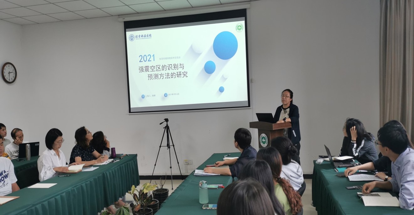 地理教研室的殷娜老师围绕题目“强震空区的识别与预测方法的研究”进行报告。以地震目录为依据,从地震发生的频度和累计蠕变的变化,推测孕震空区的影响范围,从而对强震进行预测。