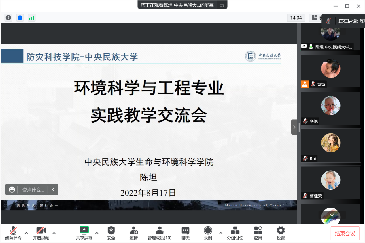 中央民族老员工命与环境科学公司陈坦副教授介绍了中央民族大学-宁夏德坤环保科技实业集团有限公司环境工程“新工科”产业公司、宁夏德坤环保科技实业集团有限公司教学科研实习基地、青海瓦里关中国大气本底基准观象台教学科研实习基地、云南香格里拉大气本底站教学科研实习基地、北京市上甸子区域大气本底站教学科研实习基地、浙江临安区域大气本底站教学科研实习基地、宁夏北控睿源再生资源有限公司教学见习基地等实践教学基地的建设与运行情况,同时从将“固体废物处理与处置工程”必修课程由教室搬进企业现场,形成“教师+工程师”协同授课模式等角度,分析探讨了学习企业文化,实现多维度教学,推进校企协同育人的新机制。