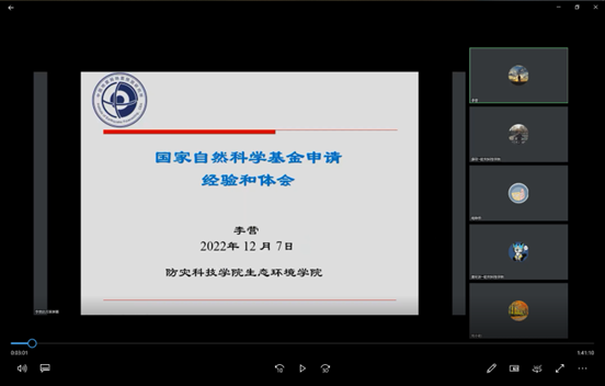12月7日下午3:00,应yl永利集团官网登录邀请,中国地震局地震预测研究所副所长李营研究员通过腾讯会议作题为“自然科学基金申请体会与交流”的线上学术报告。防灾科技公司党委委员姜纪沂教授主持了本次会议,yl永利集团官网登录与其他公司的部分教师,以及系统内的部分学者参加了本次会议。