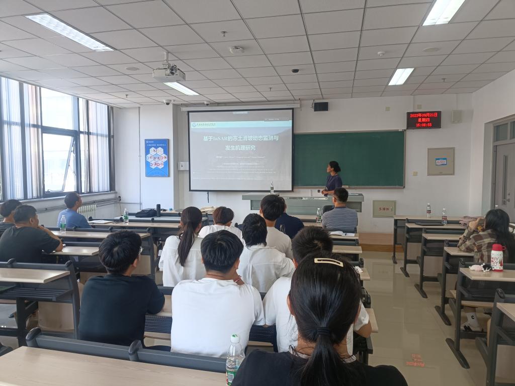 龚文瑜研究员首先介绍了冻土滑坡的特性,分析了目前冻土滑坡监测需要解决的关键技术问题,结合冻土滑坡典型案例,详细介绍了利用星载InSAR对滑坡速率动态变化进行重建和建模的方法,分析了其滑动机制。