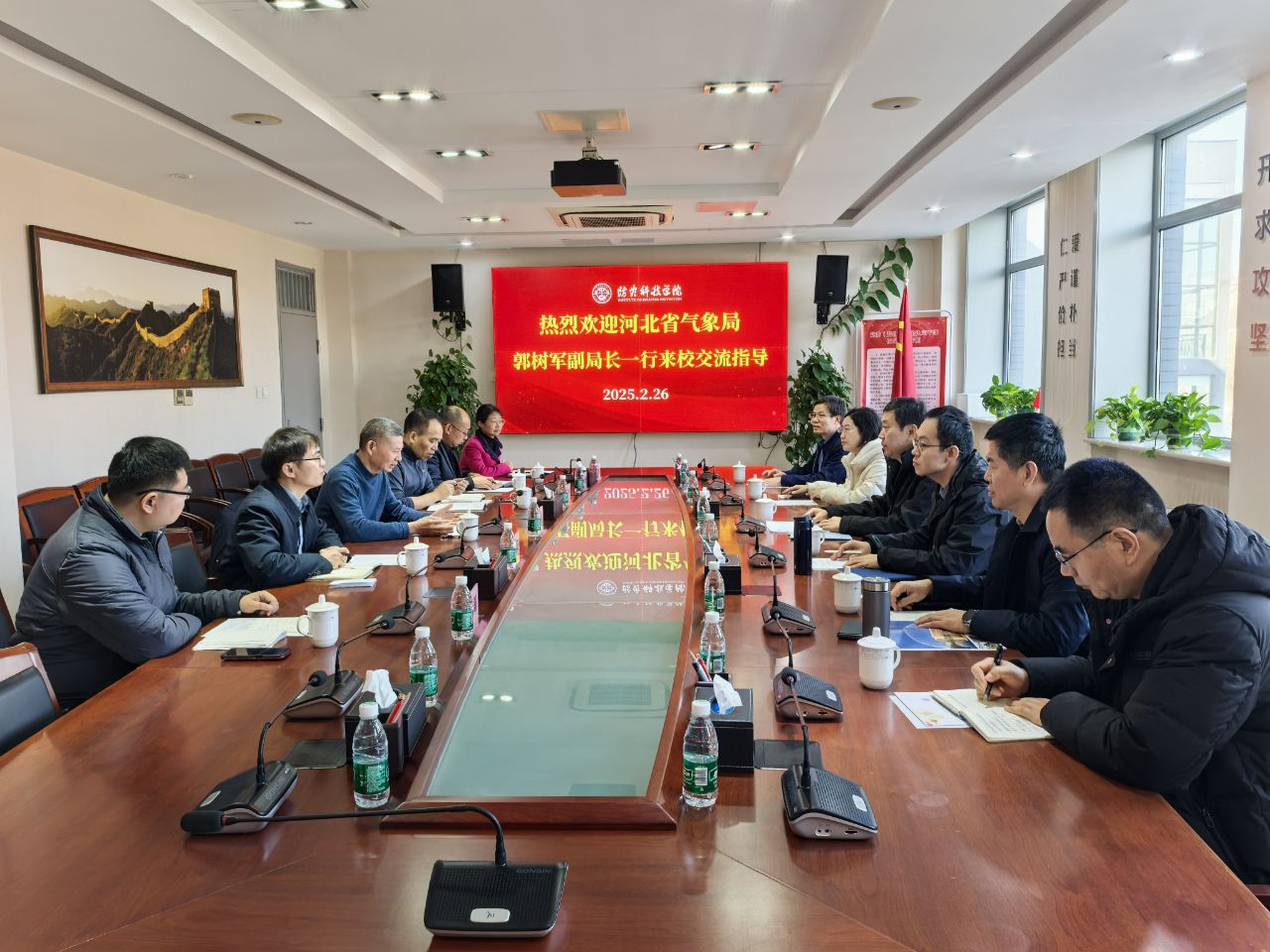 2月26日上午,河北省气象局副局长郭树军一行来校调研座谈。联合党委常委、副董事长洪利进行会见交流。