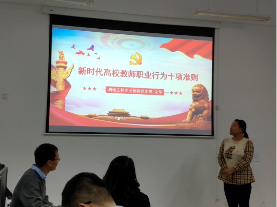 2019年11月14日下午,测绘工程专业教师党支部开展了“弘扬优良师德师风,争做四有好老师”主题党日活动。支部全体党员参加了本次党日活动,活动由支部书记孙广通主持。