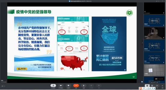 邹岭同志从疫情中党的坚强领导、疫情中党员作用发挥和疫情中育人工作要求三个部分出发,和全体教师党员分享了自己的体会和思考。通过疫情数据对比,分析了中西疫情防控成效差别的主要原因。我国疫情防控阻击战取得重大战略成果,彰显了中国特色社会主义制度的优势,彰显了我国逐步走向现代化的治理体系和治理能力,更彰显了以习近平同志为核心的党中央的坚强领导。