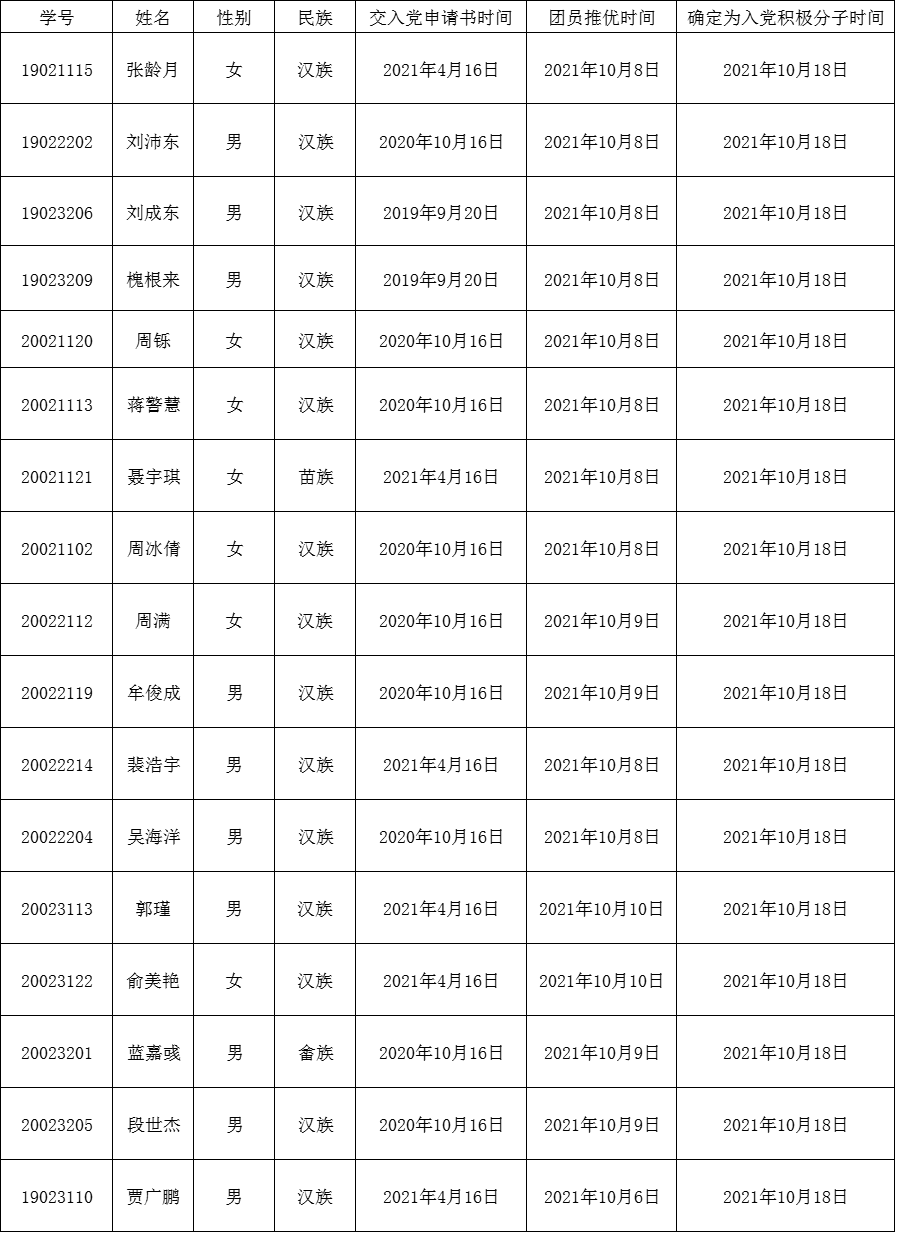 经2021年10月18日yl永利集团官网登录员工党支部委员会扩大会议讨论通过,确定张龄月等17名同志为入党积极分子,现予以公示,征求公司各部门、党员、群众的意见。