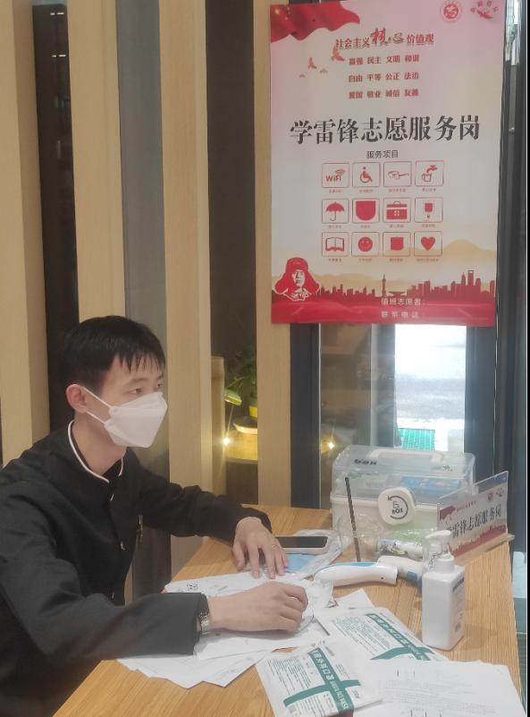 全民抗“疫”,立马“党”先。付泽康同志作为一名志愿者,去帮助社区的叔叔阿姨们减轻他们的工作压力,同那些医护人员一起,站在了肺炎防控的监测点。朱河西同志参与社区党员疫情保障志愿活动中的社区消毒工作。努力做到事情简单但不漏一人,不疏一环节,任何一个细节都全力把好关。高云飞同志在社区门口检查出入人员发放通行证、测量体温;还负责购买生活物资;组织居民进行核酸检测,发放核酸检测试剂,教老年人如何自己做核酸检测并利用智能手机上传信息。疫情就是命令,防控就是责任。作为共产党员,他们充分发挥先锋模范作用,不忘初心、牢记使命,挺身而出、英勇奋斗,坚决贯彻坚定信心、同舟共济、科学防治、精准施策的总要求,做到疫情在哪里,共产党员的身影就出现在哪里,鲜红的党旗就高高飘扬在哪里,为坚决打赢疫情防控的人民战争、总体战、阻击战做出贡献。