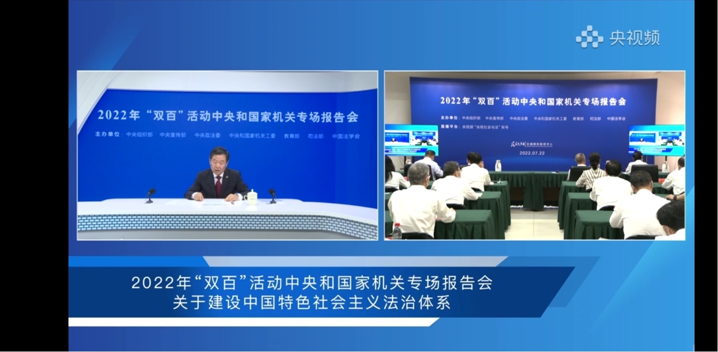 根据公司党委宣传部要求,2022年7月22日地理科学教师党支部组织观看了2022年“百名法学家百场报告会”法治宣讲活动中央和国家机关专场报告会。会议通过央视频和支部钉钉群进行,党支部书记石云同志主持活动,地理科学专业教师党支部全体成员参加。