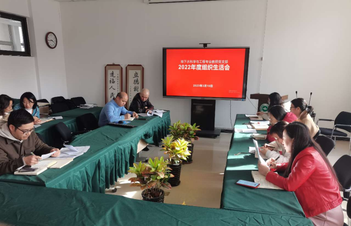2023年3月16日,地下水科学与工程专业教师党支部2022年度组织生活会于长庚楼320教室开展,本次生活会以“全面贯彻习近平新时代中国特色社会主义思想,深刻领悟“两个确立”的决定性意义,增强四个意识,坚定四个自信,做到两个维护,团结带领支部以及群众,发扬奋发有为的精神,贯彻落实党的二十大做出的重要部署”为主题。公司党总支书记邹岭同志和全体地下水科学与工程专业教师党支部的党员同志参加了此次会议。