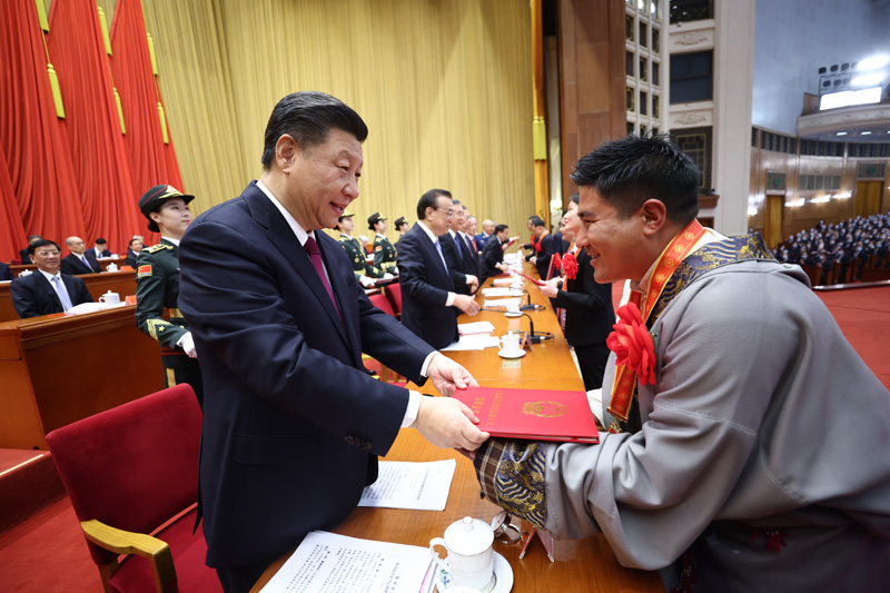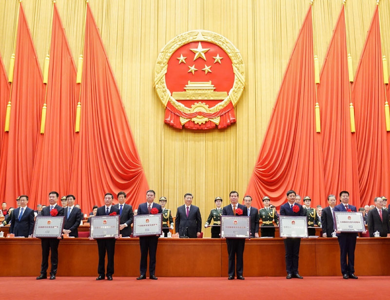 习近平等为受表彰的个人和集体代表颁奖。